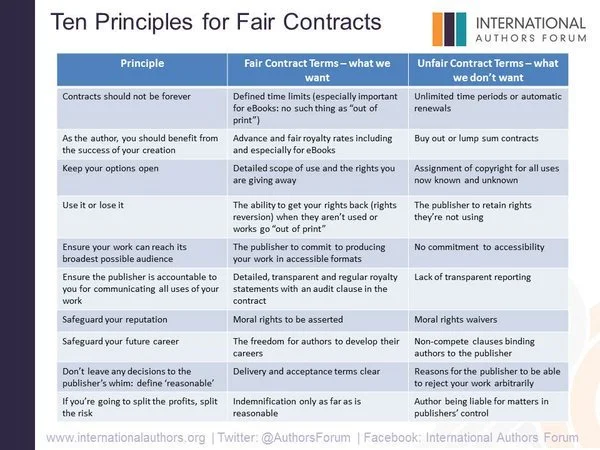 Writers are at a disadvantage here because, generally, we want to be published. We want to believe in the goodwill of the publisher with whom we’re dealing; we're afraid of rocking the boat by being stroppy and asking too much. We probably can’t afford lawyers at all, and almost certainly don’t have access to an experienced publishing contract lawyer; many of us are unagented. Our eyes glaze as we read, and we’re not really sure what a lot of it means, but, you know, they publish lots of people, don’t they? The editor is lovely; authors say nice things about the publisher on Facebook. Surely it’ll be fine?